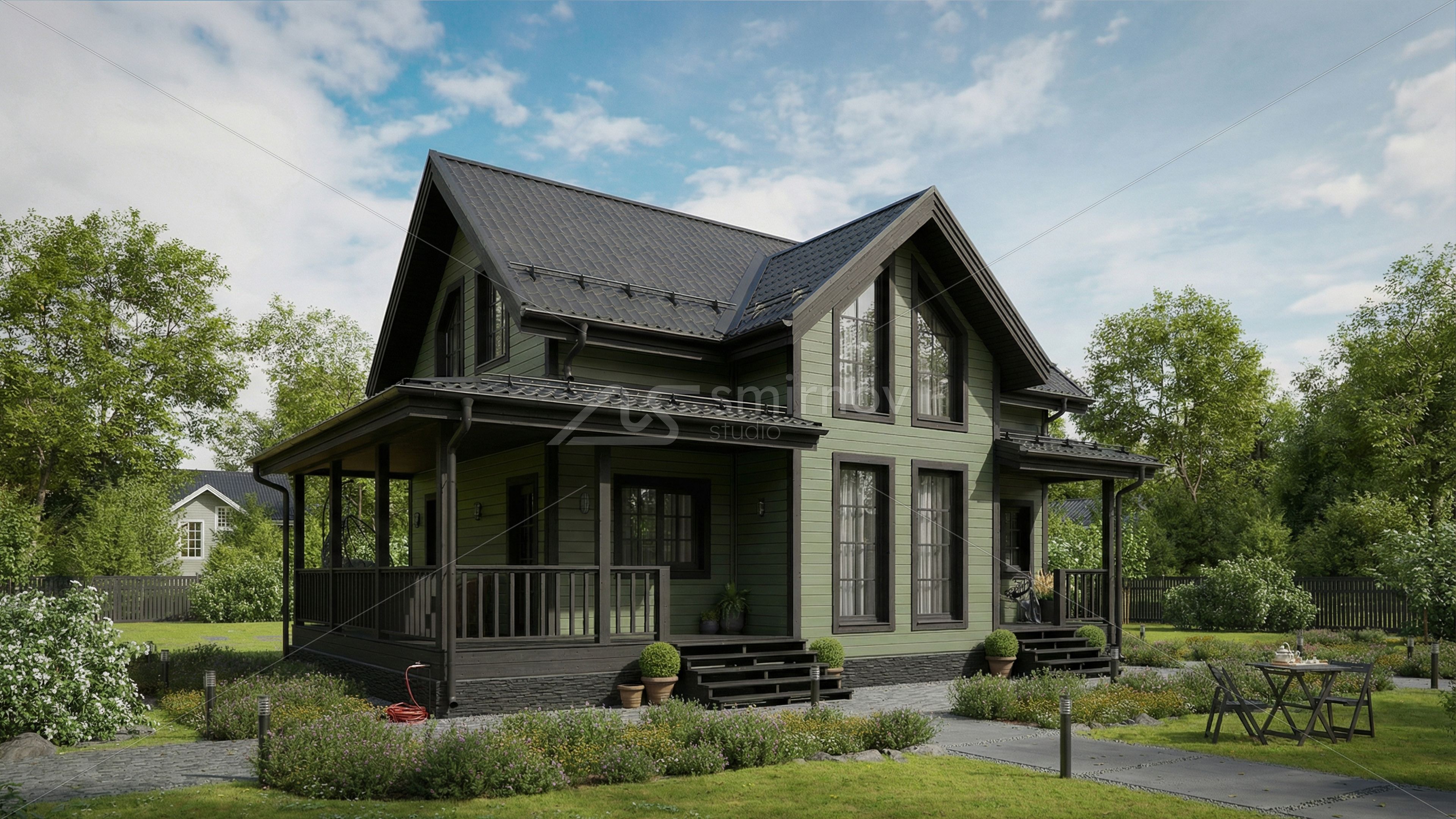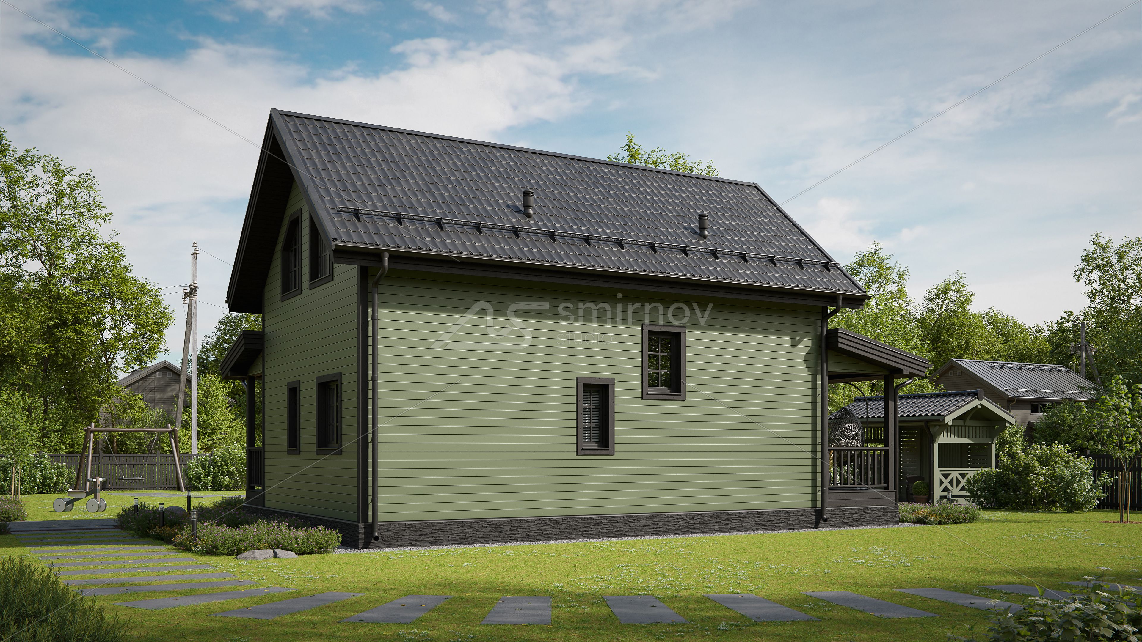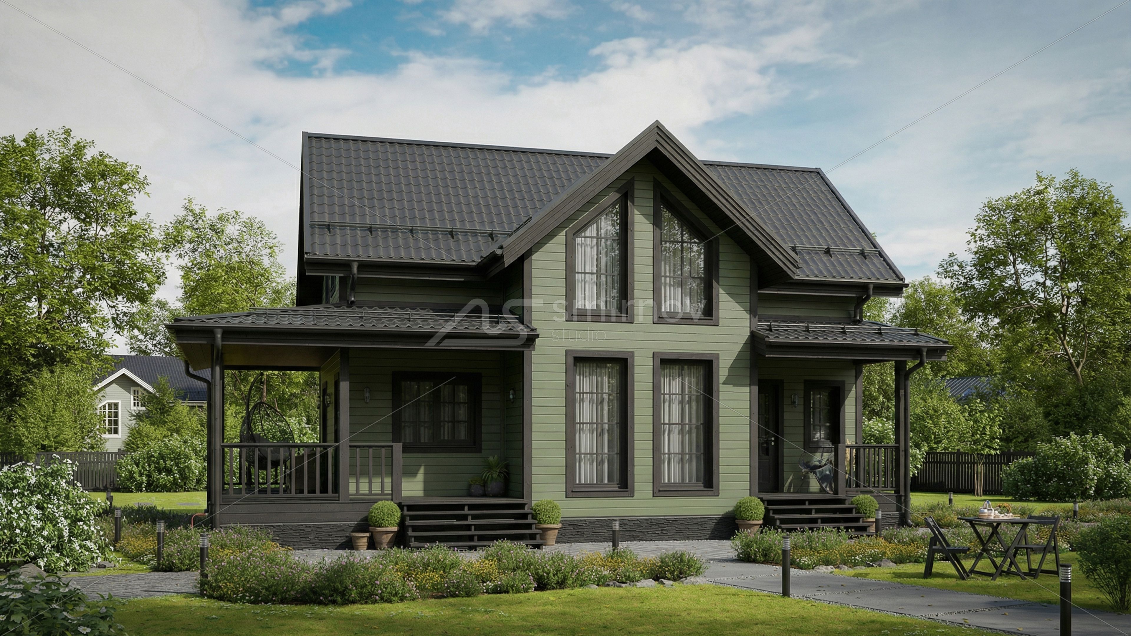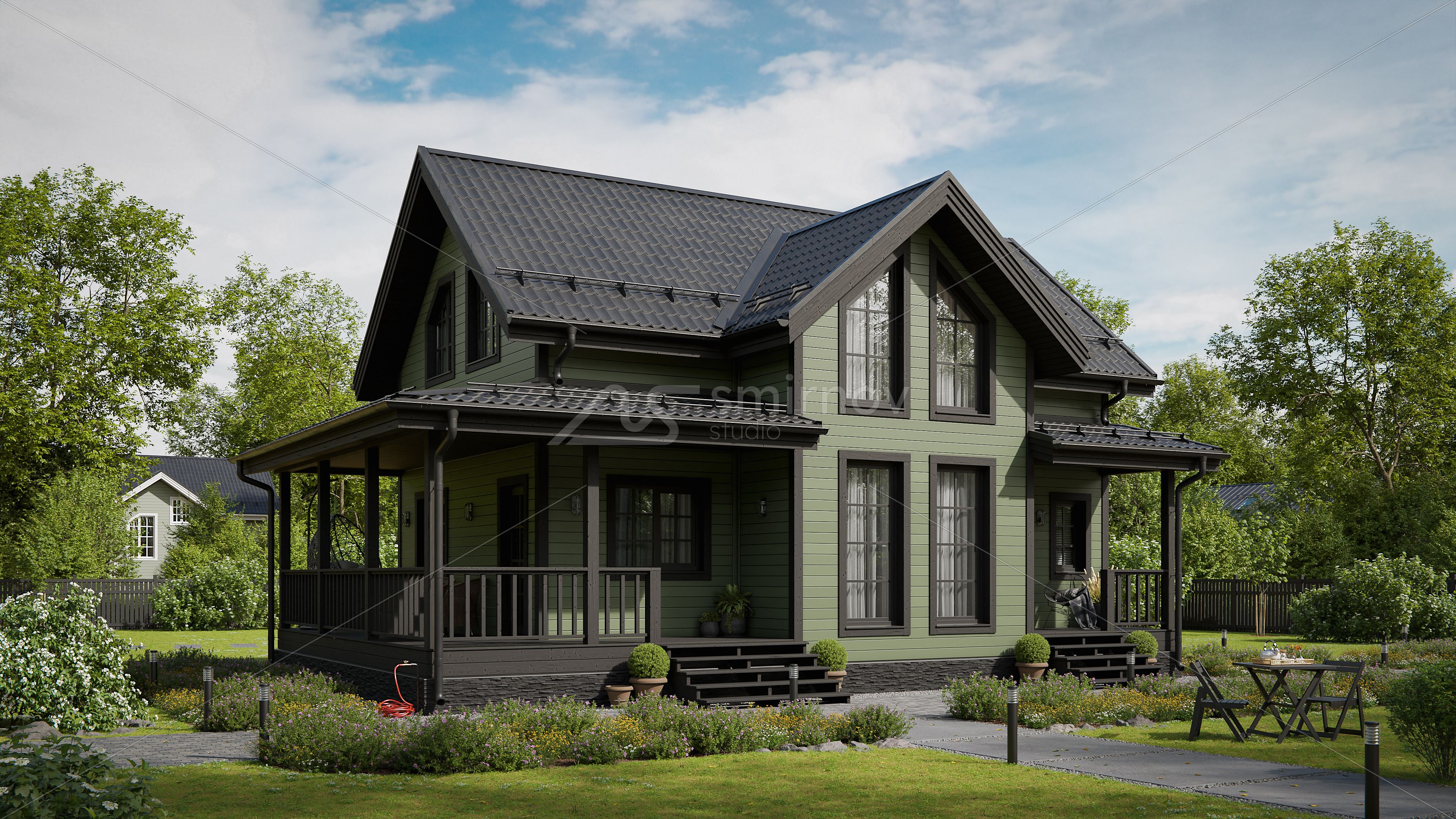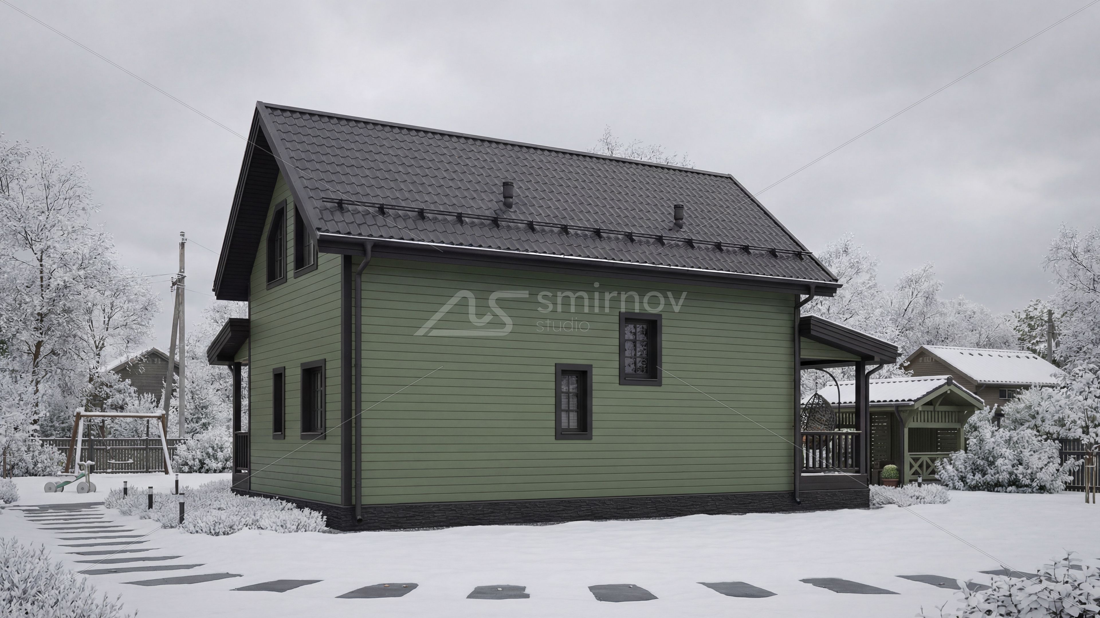 Было сделано несколько ракурсов для типового проекта. Дополнительно создали красивое видео к проекту для размещения его на главном экране сайта в комбинации летней и зимней стилистике